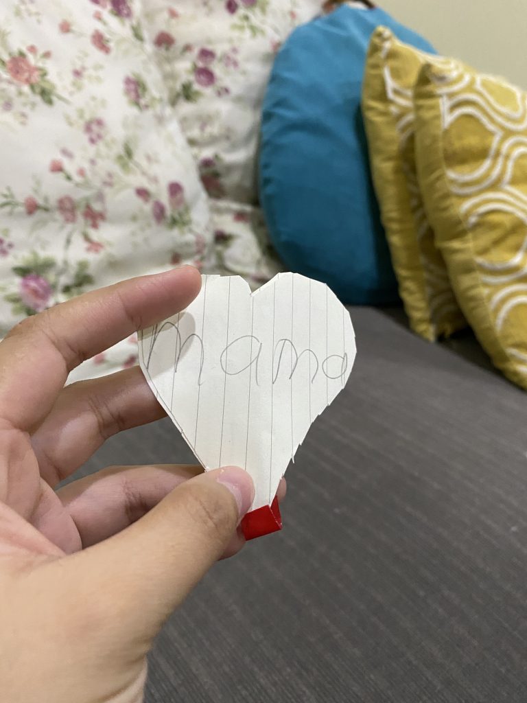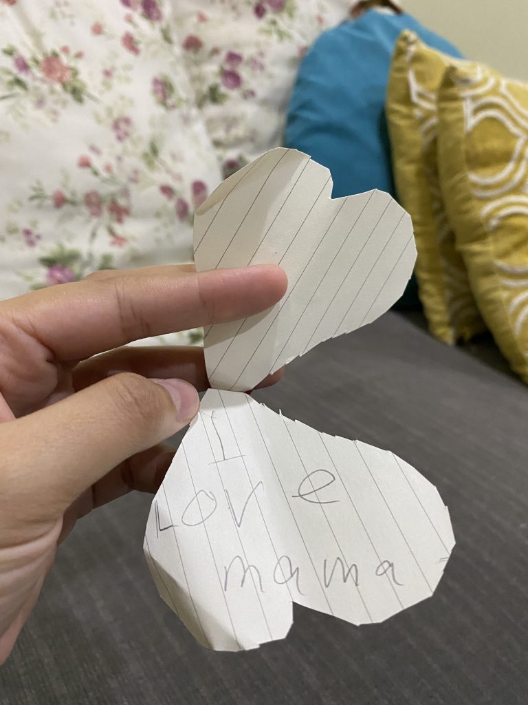 p/s: after the information of mother’s day was relayed to them, they actually did a small and quick cut outs for me but was thrown away by bibik as she thought it was “sampah”. It was Auni’s idea though & the sisters just followed through the plan.
